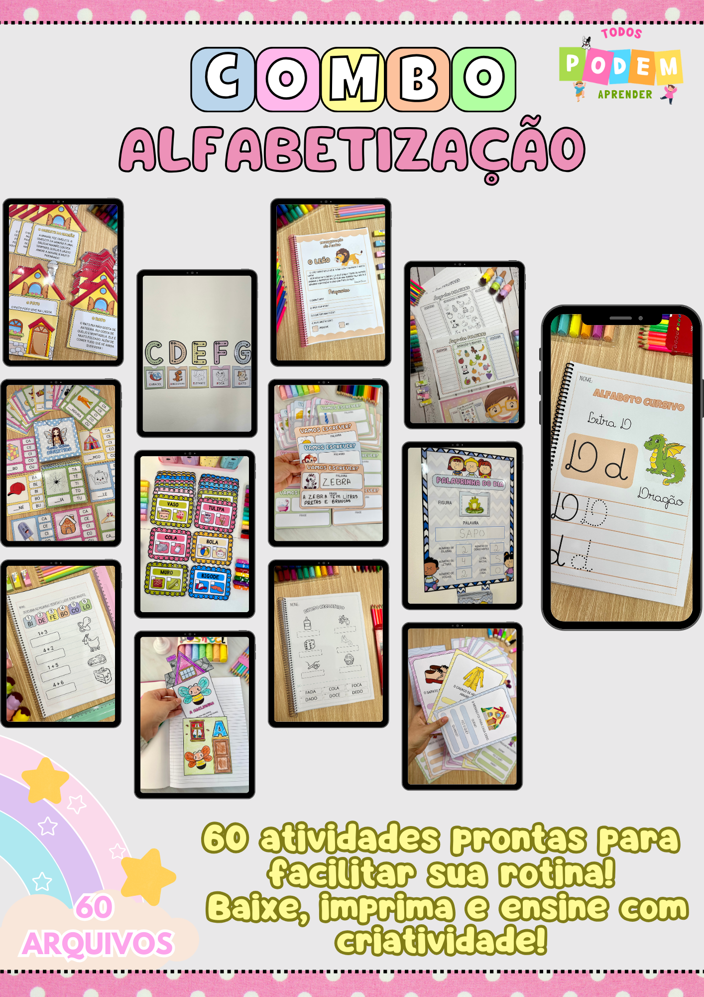 🚀 Chega de perder tempo planejando! Com este combo, você terá 60 atividades didáticas e interativas para fortalecer a alfabetização de forma leve, divertida e eficiente – e o melhor: cada atividade sai por menos de R$ 3!